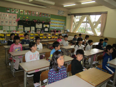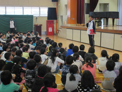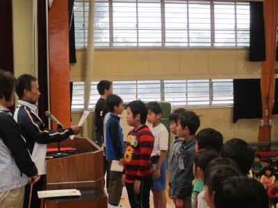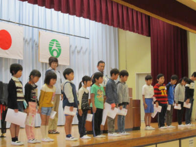 今日のコスモス賞は、9月の生活目標「あいさつ・返事」のよい子を表彰です。