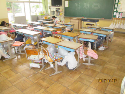 地震を想定した避難訓練を行いました。いつ来るかわからないだけに、真剣です。