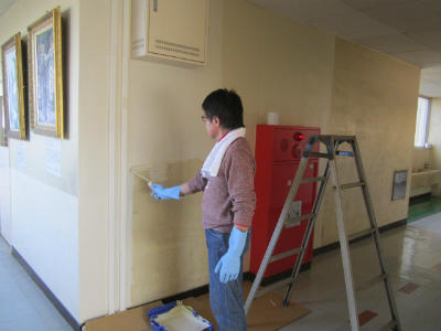夏休みにたくさんの保護者の方のご協力をいただいた廊下のペンキ塗りを行いました。
