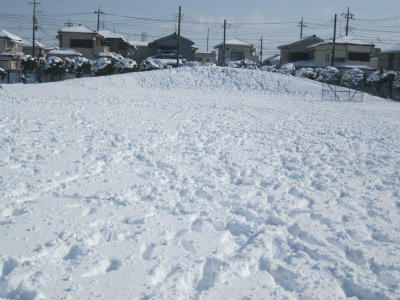 自分たちで校庭に作った雪だるまを邪魔にならないように壊しています。