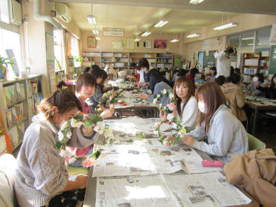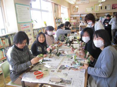 PTA主催のプリザード・フラワー講習会が行われ、たくさんのお母さん方が、楽しそうにすばらしい作品を作りました。