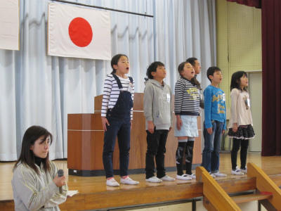 卒業生に感謝を込めて、一生懸命に呼びかけと歌を歌います。