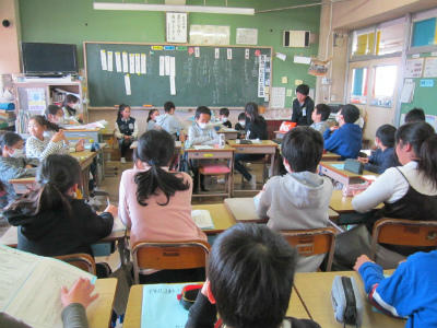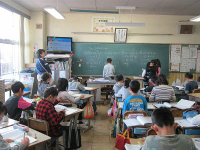 算数の答えを黒板に。