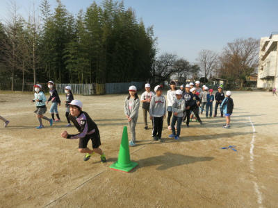 朝の加速走。全学年が取り組んでいます。スタートもよくなってきました。