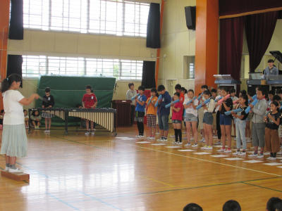 6年生の演奏に合わせて、歌い出す子供たちの顔が、可愛かったです。