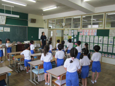 今年のトップを切って、6年生が音楽朝会で発表しました。