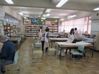心臓検診の会場づくりを進め、1年生を迎えます。