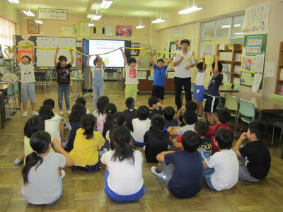 クイズ、自分の行動などについて、考えたり、手を挙げたりして、子供たちは夢中で話に引き込まれています。