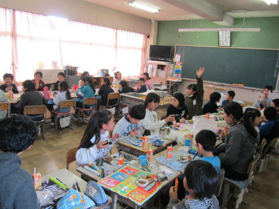 いつもと違う顔ぶれで食べる給食は、おいし~い