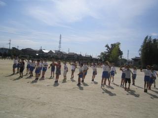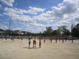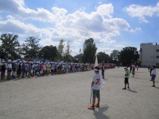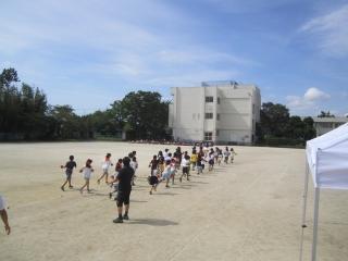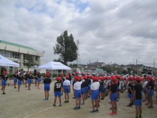 明日、運動会ができると信じて、全校で開会式の練習を行いました。