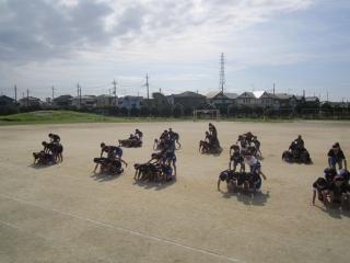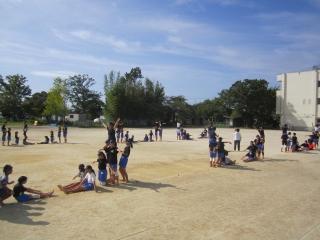 土曜日の天気が気になる中、子供たちは応援練習です。