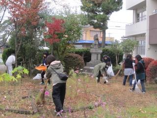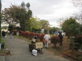 今朝もお忙しい中を縫って、保護者の方たちに落ち葉掃きをしていただきました。