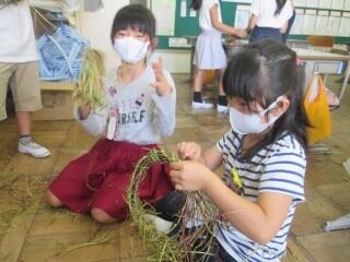 自分で育てたアサガオの蔓を使ったリースづくり。