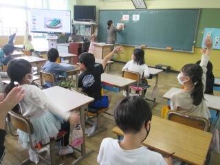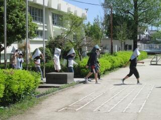1年生は、防災頭巾の使い方や安全な避難の仕方を学習していました。