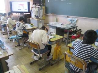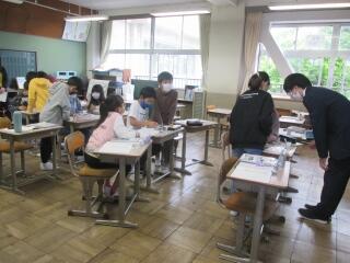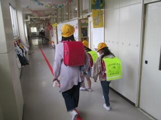 朝、教室まで1年生と一緒に来てくれる6年生。