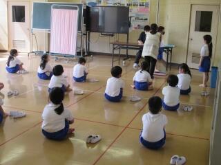 イスの座り方や鉛筆の正しい持ち方を学びました。