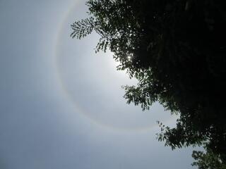 太陽の周りに虹のような光の輪が。この輪は「ハロ」と呼ぶそうです。