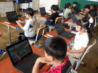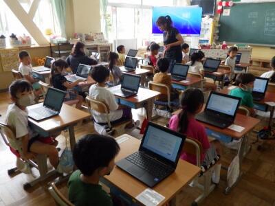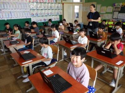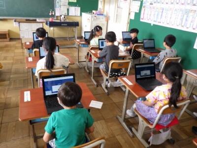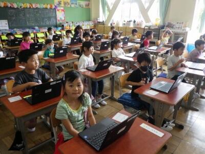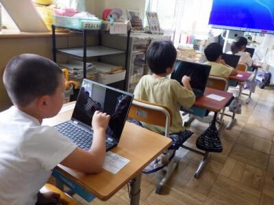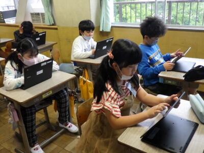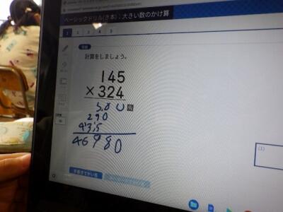登校後、ランドセルの中身を移し替えると早速AIドリルにとりかかります。