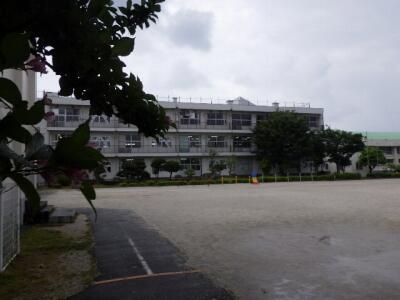 昼休み、午前中に降った雨のため校庭で遊ぶことはできません。