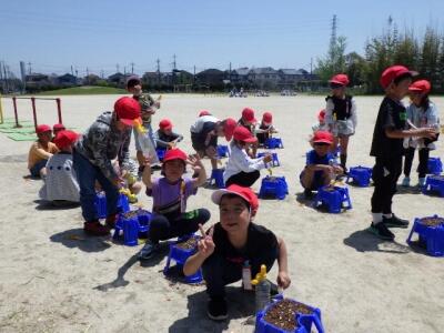 1年生がアサガオの種まきをしました。
