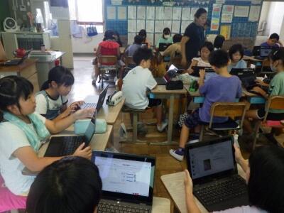 ICT支援員さんのアドバイスを受けながら、発表資料づくりを進めていきます。