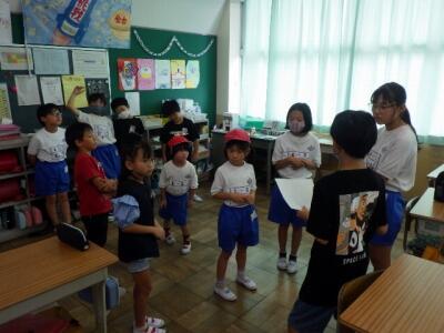 木曜日の昼休みに、1年生から6年生までの縦割りグループで集まります。
