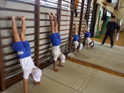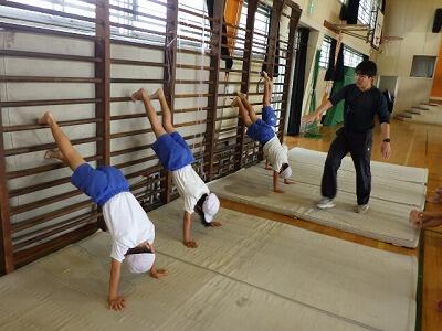 体育館では2年生がマット運動をしていました。