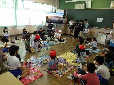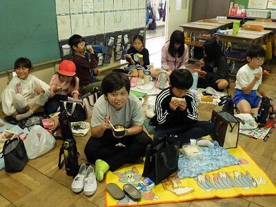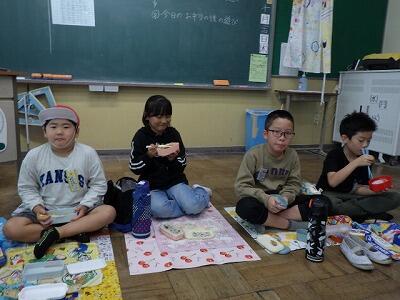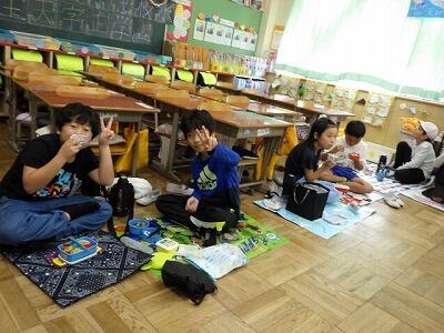 1年生から6年生までの縦割りグループで、いっしょにお弁当をいただきます。