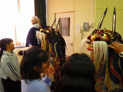 前半は、獅子舞の基礎知識を丁寧に教えていただきました。