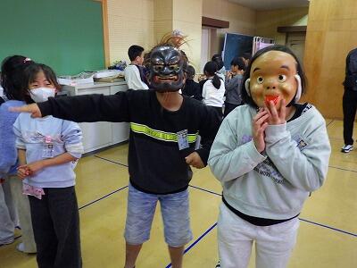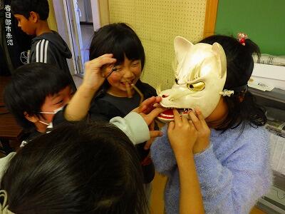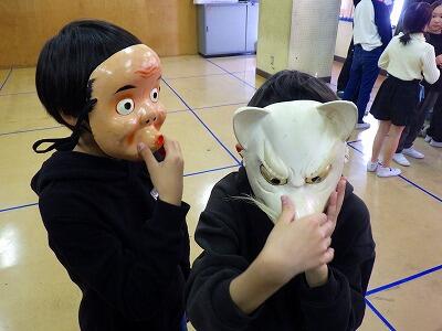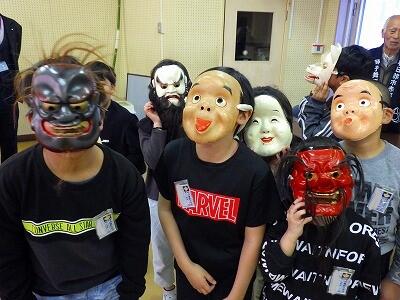獅子舞の間に余興として神楽舞が演じられるため、いろいろな種類の神楽面があります。