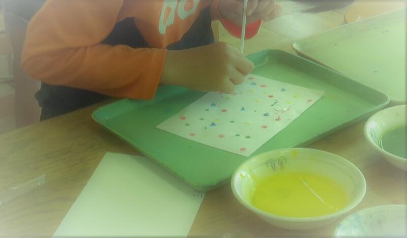 書き、桁を間違えないように書いていました。図工では、この他にマーブリングやぼかしなど、
