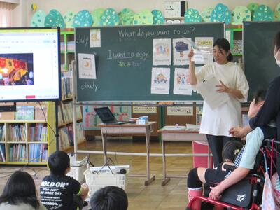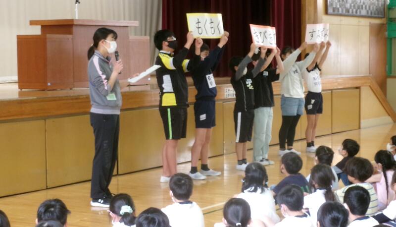 1年生もお兄さんお姉さんとして、幼稚園児に優しく対応していました。1年生の立派な姿勢に幼稚園の先生も驚かれたようです。ご協力いただいた内牧幼稚園の先生方、ありがとうございました。