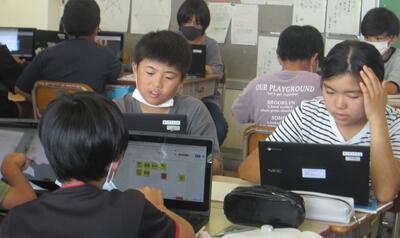 チームで作戦を練ったり、役割分担を考えたり4年生らしい活動をしていました。お絵かきゲームは、ミッキーマウス・アンパンマン・ドラえもんと子どもたちに人気のキャラクターがお題です。お題を予想するのも楽しそうでした。