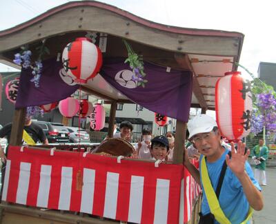山車は14:00に栄町会館を出発し、ぐるぐる公園に移動します。みなさんの笑顔が素敵ですね♪