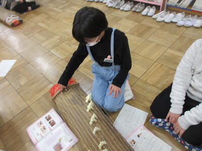 食育ボランティアさんのご協力のもと、1年生を対象に正しいはしの持ち方や使い方を知るための食育教室『おはし名人になろう!』を実施しました。