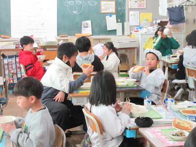 赤米を栽培している農家の方の動画を観てから、給食をいただきました。平仮名には一文字一文字、意味があり、『い』は『いのち』、『ね』は『根っこ』という意味があり、稲には『いのちの根っこ』という意味があることをお話してくださいました。春日部市で作られた食材を多く使った、お祝い給食を心を込めていただきました。