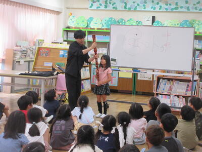 5年3組のみなさんによるリコーダー奏と合唱の発表がありました。