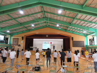 その後全校でも一緒に手拍子・足踏みも行いながら