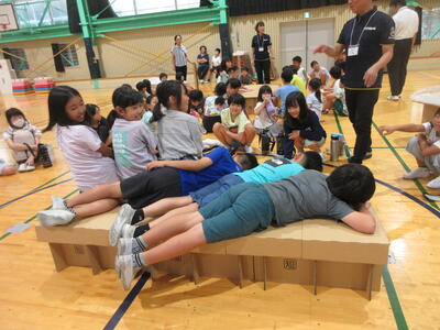 高校生のお兄さんお姉さんに教えてもらいながら頑張っていました。