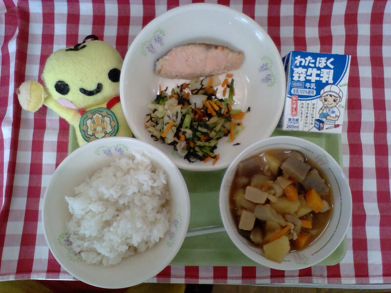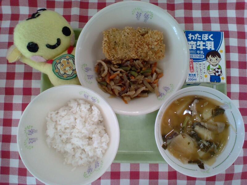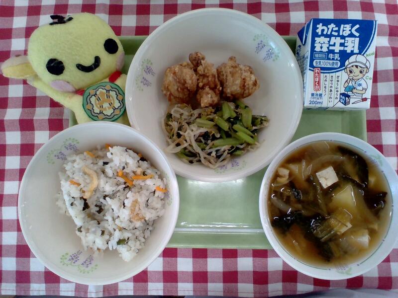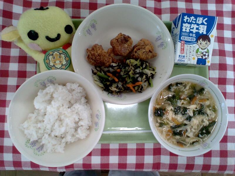 ★今年度の食育の日は、米粉を使った献立を実施します。米粉は春日部産の米粉を使用しています。米粉の特徴を生かし、唐揚げは『ざくざく』とした食感、かき玉汁に入れることで『ふわふわ』とした食感を味わいます。