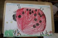 1年生は「むしとなかよし」という題材で、自分の好きな虫と楽しく活動してることを表現しています。