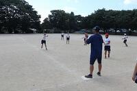 ライオンズアカデミーから、星野智樹コーチと高橋朋己コーチが来校し、5年生を対象に投げる・捕る練習と野球型ゲームを教えてくださいました。