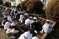 春日部地区更生保護女性会の方々により、チューリップの球根を1年生の教室前の花壇に植えていただきました。
