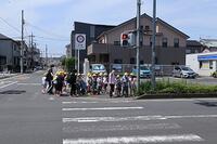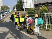 今日から1年生も通学班で登校します。高学年の班長に連れられ、近所の小学生と一緒に登校しました。