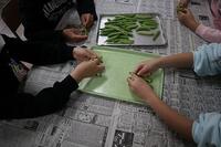 1年生は、食育の一環としてソラマメのさやみきをしました。