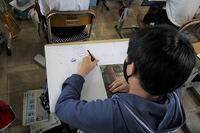 教室や昇降口、校庭だけでなく、委員会活動を頑張った図書室や放送室を描く子もいました。