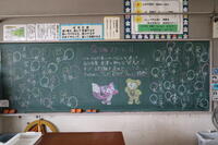 提出物を入れる容器を準備したり、黒板にメッセージを描いたり、教室の環境整備をしたり………。
