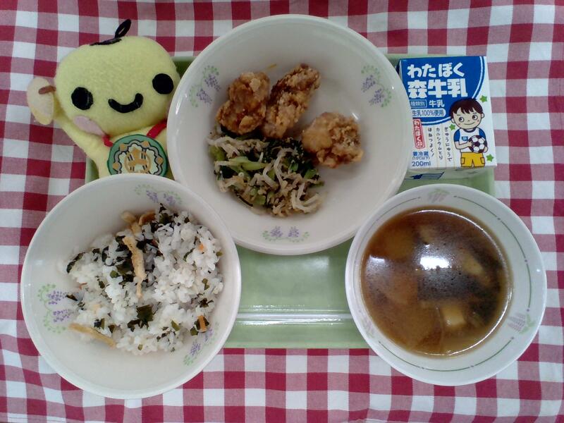 ★7月18日は、内牧小学校の開校記念日です。少し早いですが、開校記念日をお祝いして、人気メニューの鶏肉の唐揚げをいただきます。