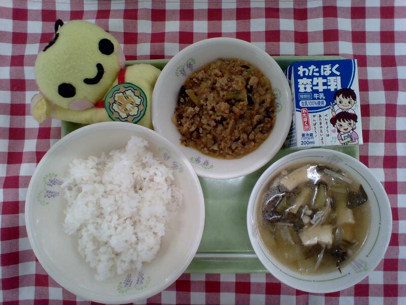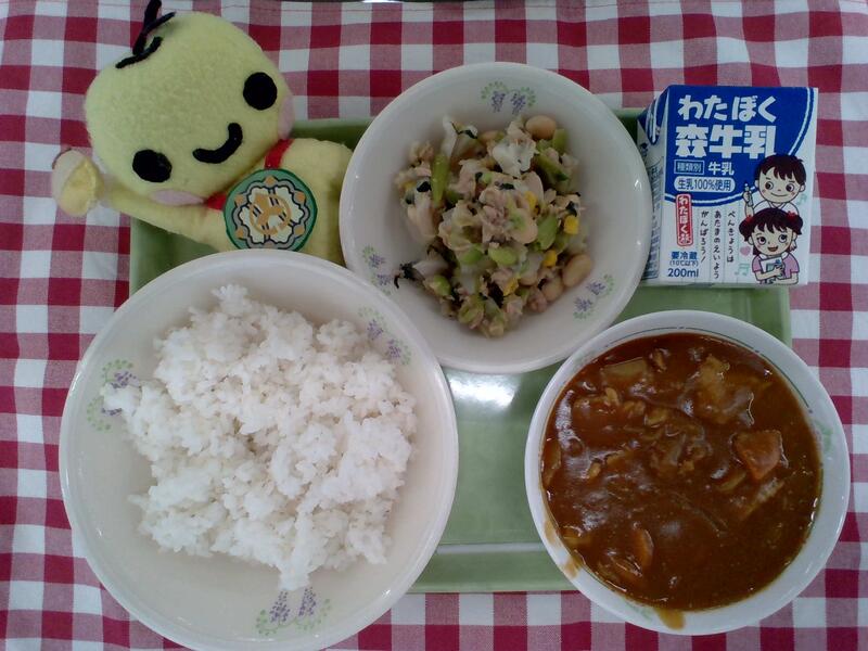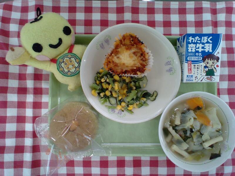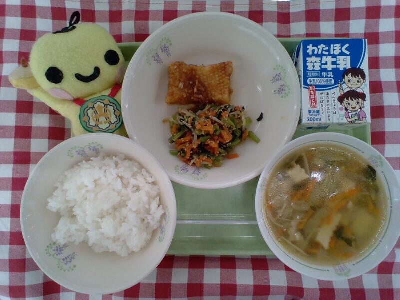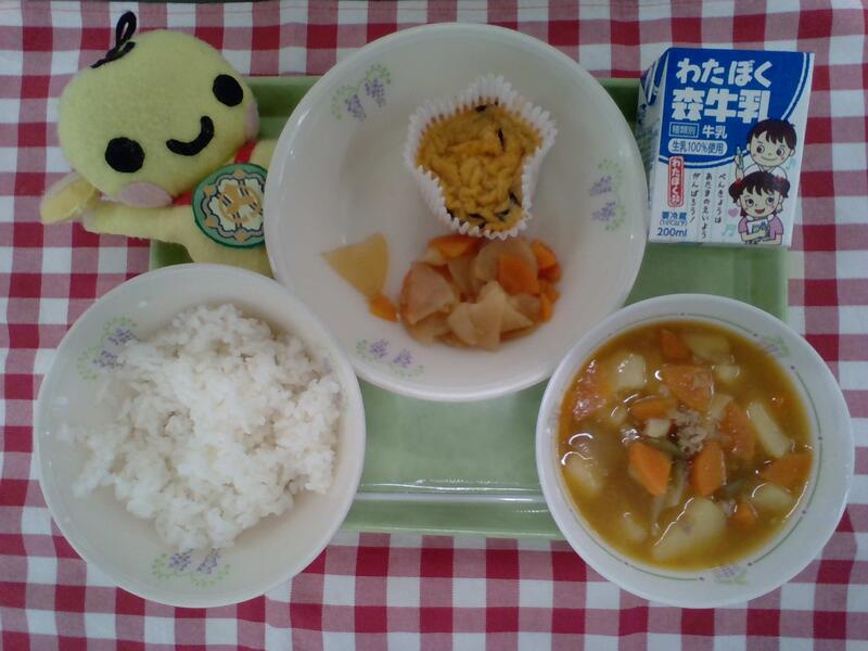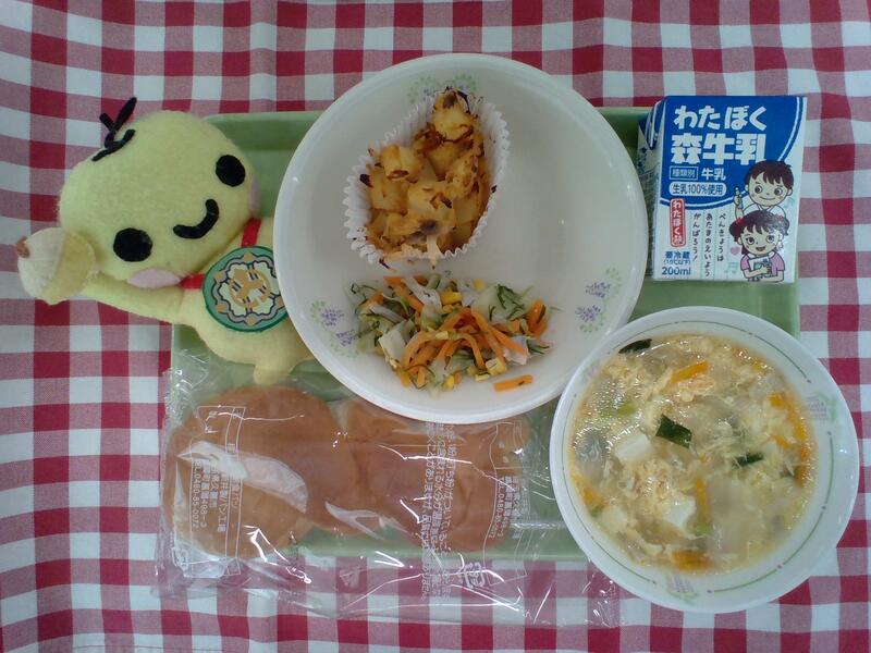 ※ 6月4日〜10日は『歯と口の健康週間』です。今日は、むし歯予防の献立を実施しました。いかや食物繊維が豊富な野菜を多く使った噛みごたえのある献立内容です。よく噛むことで、唾液が分泌され、むし歯予防になります。よく噛んで食べて、むし歯を予防しましょう。