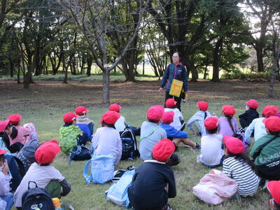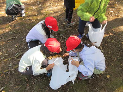 たくさんのどんぐりが落ちていて、子どもたちは嬉しそうに拾っていました。